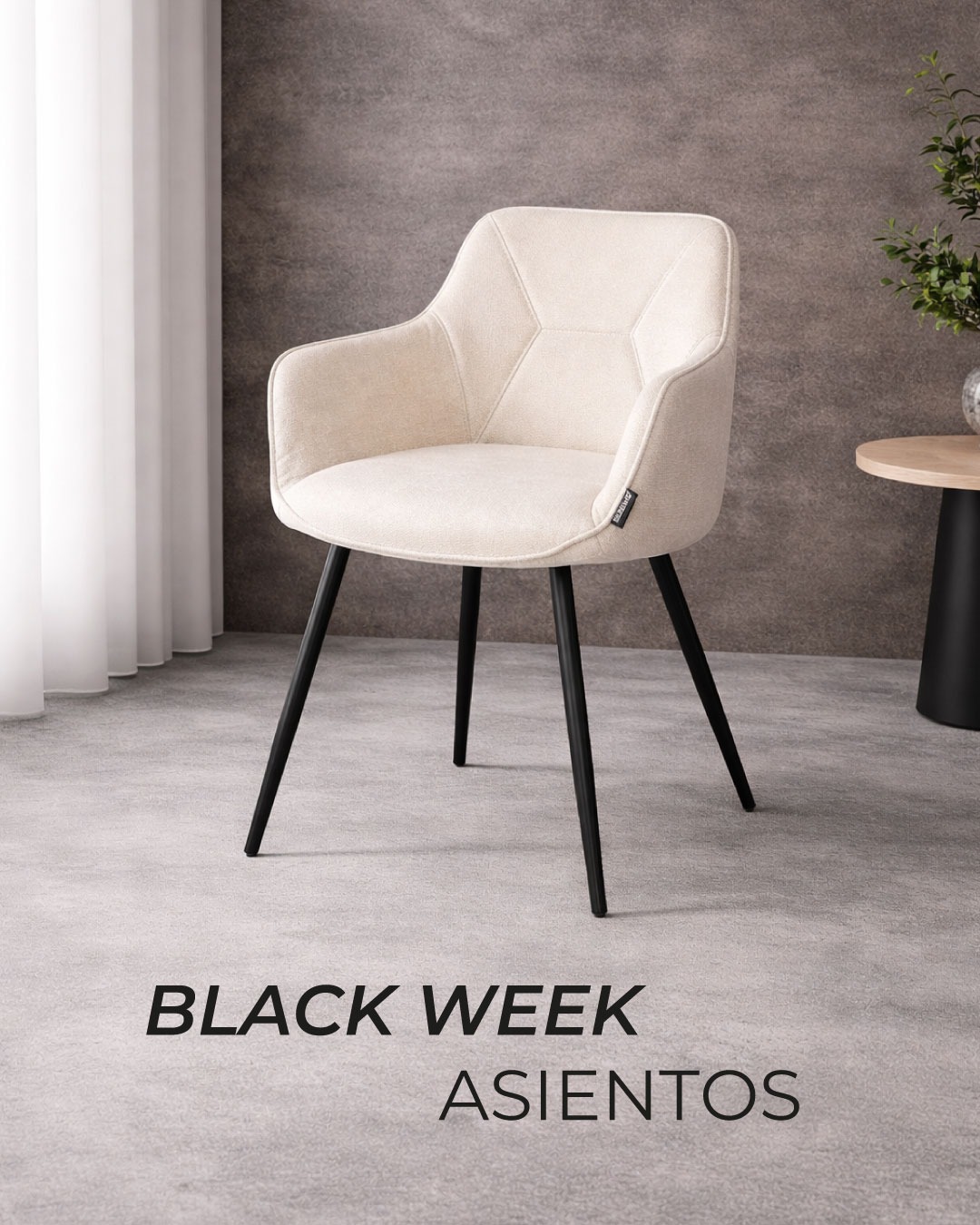 Poltrona Watson con tapiz en tela Motto blanca y apoyabrazos en cuero color caramelo. Diseño moderno, elegante y cómodo con estructura metálica.