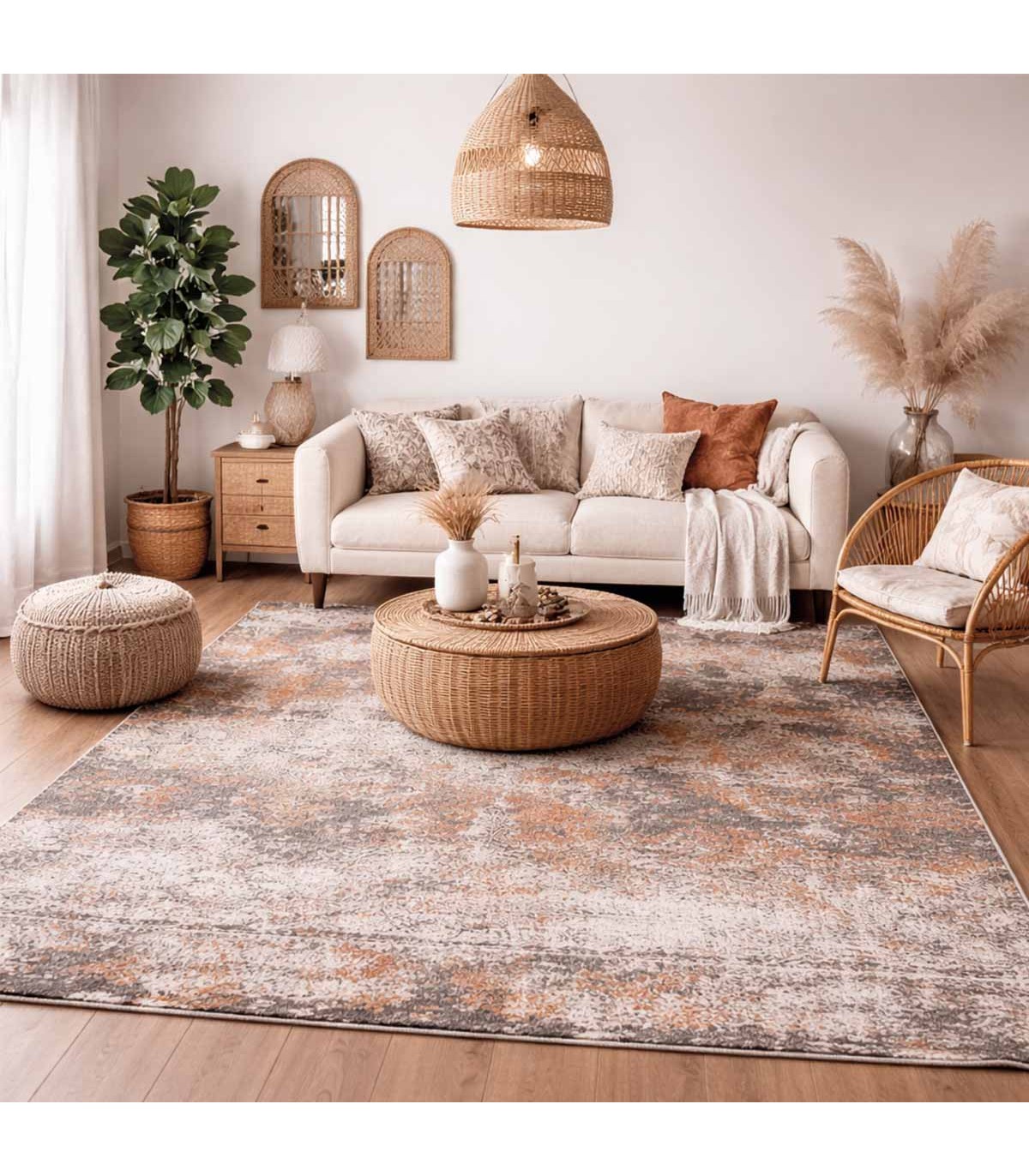 Alfombra Turca Gallery Marroquí Gris/Cobre 200 x 290 cm Un diseño que combina estética contemporánea con inspiración artesanal, ideal para aportar carácter y sofisticación a pasillos y espacios alargados. Su patrón marroquí en tonos gris con sutiles acentos cobre genera un equilibrio armónico entre calidez y modernidad, perfecto para interiores elegantes y bien definidos. Gracias a su formato alargado, esta alfombra entrega continuidad visual y una sensación acogedora sin sobrecargar el ambiente, adaptándose fácilmente a recibidores, pasillos o laterales de camas y cocinas. Características destacadas Tejido a máquina de alta precisión. Textura suave y agradable al tacto. Alta durabilidad, ideal para zonas de alto tránsito. Fácil mantenimiento. Formato ideal para pasillos y espacios alargados. Materialidad: Fabricada en Poliéster, resistente al desgaste y diseñado para conservar color y forma con el tiempo. Estilo: Marroquí · Moderno · Elegante · Contemporáneo