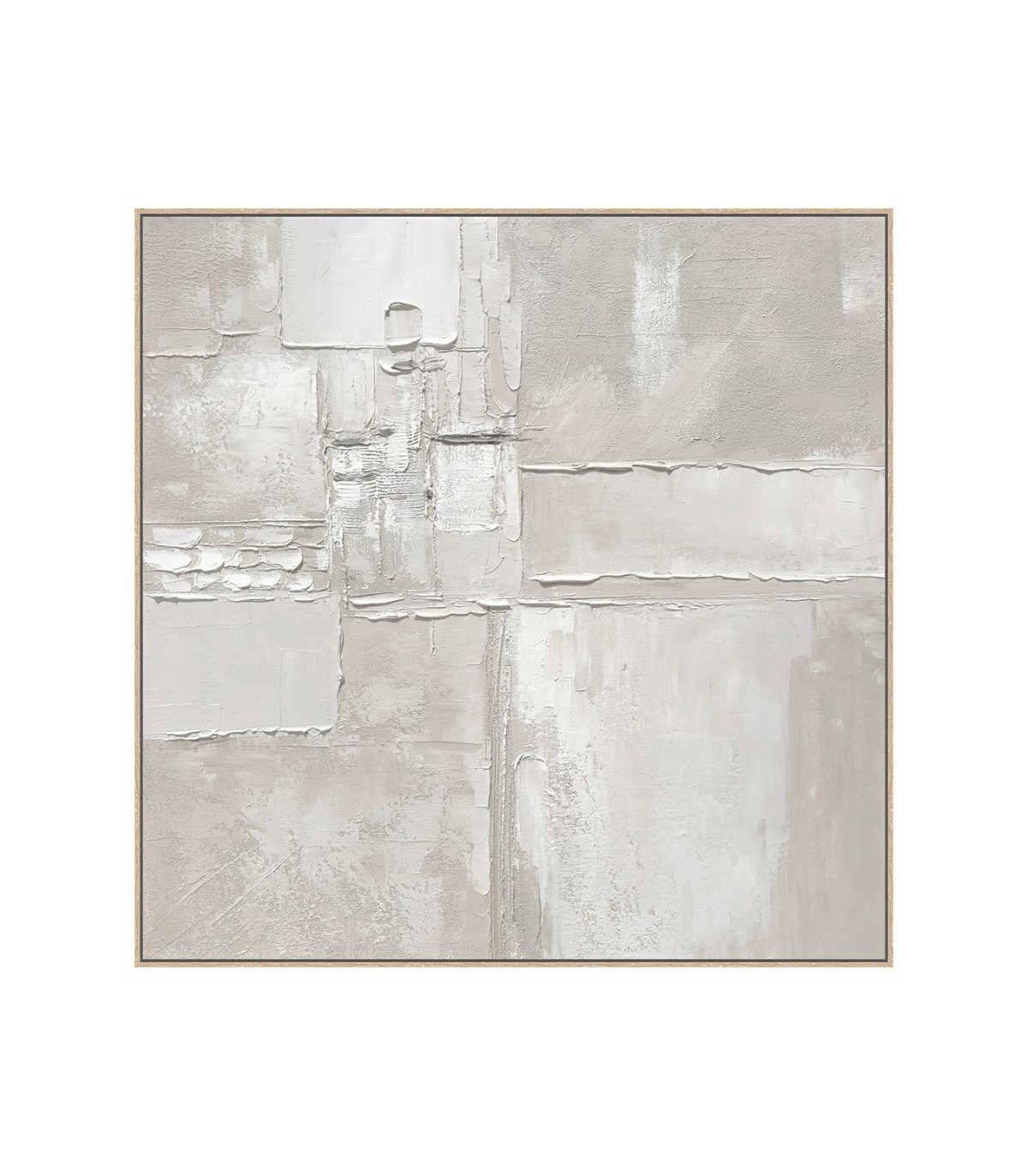 Obra pintada a mano sobre canvas en tono blanco puro, con sutiles relieves y textura que aportan profundidad desde la simplicidad. “La Cuadra” se destaca por su estética serena y equilibrada, mientras que el marco caramelo complementa la pieza con un toque natural y cálido. Ideal para livings, dormitorios o espacios de estilo escandinavo, neutro o moderno que buscan arte discreto y elegante. Características: Técnica: Pintura al óleo sobre canvas. Color predominante: Blanco puro. Marco: Caramelo. Medidas: 100 cm (ancho) x 100 cm (alto) x 4,5 cm (profundidad) Origen: China. Una obra que transmite calma y sofisticación, perfecta para ambientes que valoran el diseño sutil y refinado.