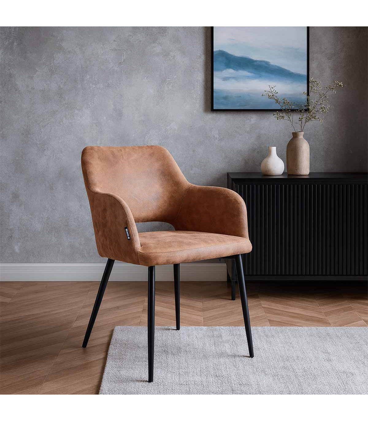 Silla Harry – Tela Café Chocolate con Estructura Metálica Negra La silla Harry combina comodidad, estilo moderno y un toque cálido gracias a su tapiz en tela café chocolate. Su diseño envolvente y asiento amplio ofrecen una experiencia confortable ideal para comedores, oficinas o salas de reunión. La estructura metálica con terminación negra aporta estabilidad y un look contemporáneo que se adapta fácilmente a distintos espacios interiores. Materiales: Tela café chocolate y estructura metálica con pintura negra. Medidas: Ancho 62,5 cm | Profundidad 58 cm | Alto 86 cm Uso: Interior. Origen: China.